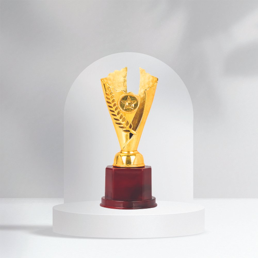 Celebrate excellence with our Premium Flame Design Trophy, perfect for schools, colleges, corporate events, and sports competitions. Made with a golden metallic finish and mounted on a sturdy wooden base, this elegant trophy features a rising flame design available in red or blue accent colors, symbolizing victory, energy, and achievement.