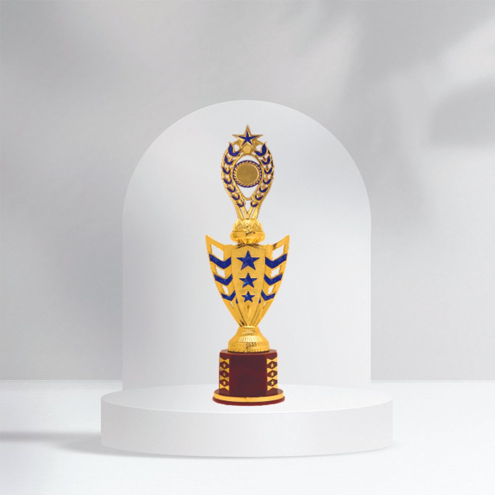 Celebrate excellence with our Premium Flame Design Trophy, perfect for schools, colleges, corporate events, and sports competitions. Made with a golden metallic finish and mounted on a sturdy wooden base, this elegant trophy features a rising flame design available in red or blue accent colors, symbolizing victory, energy, and achievement.